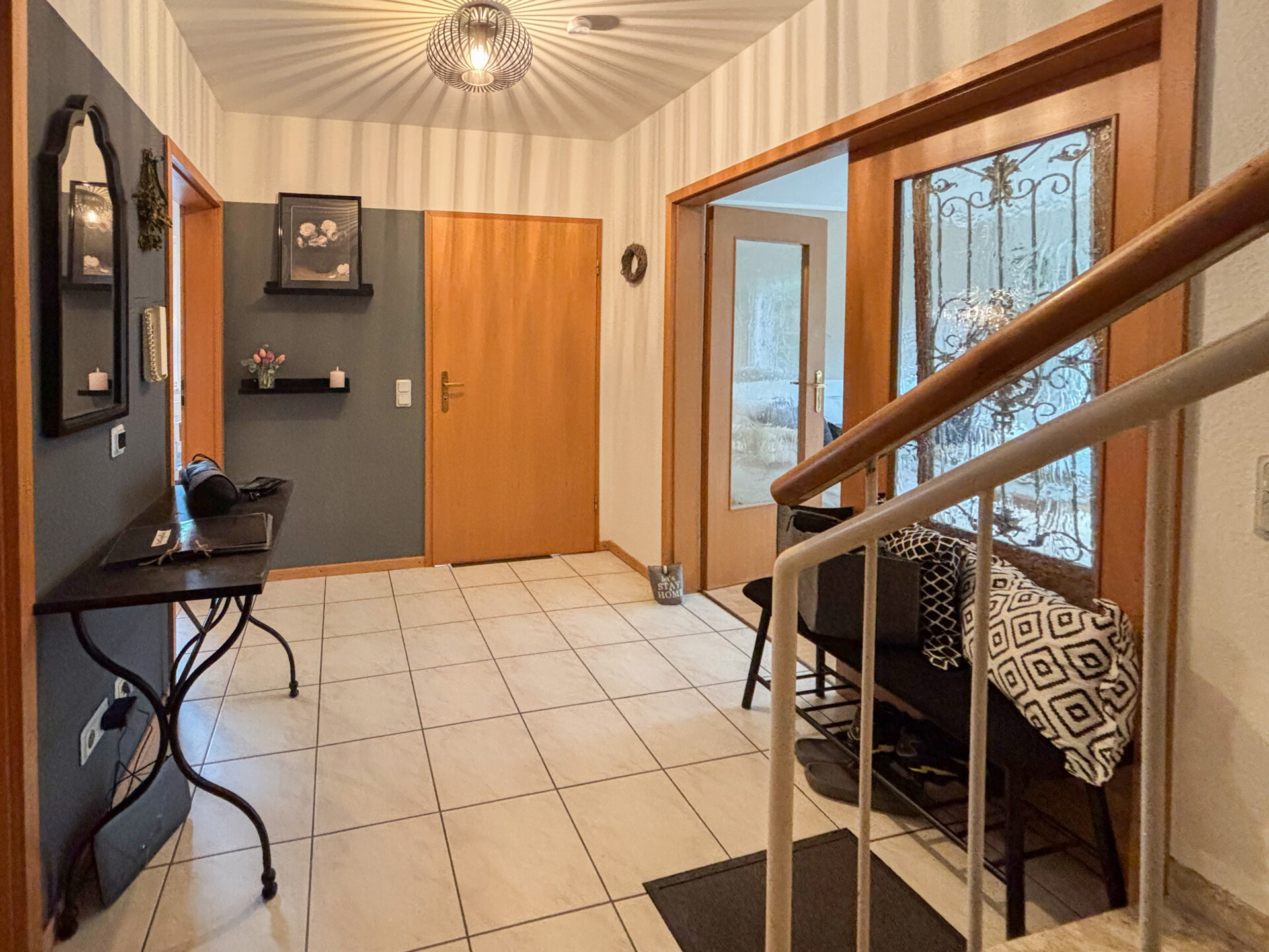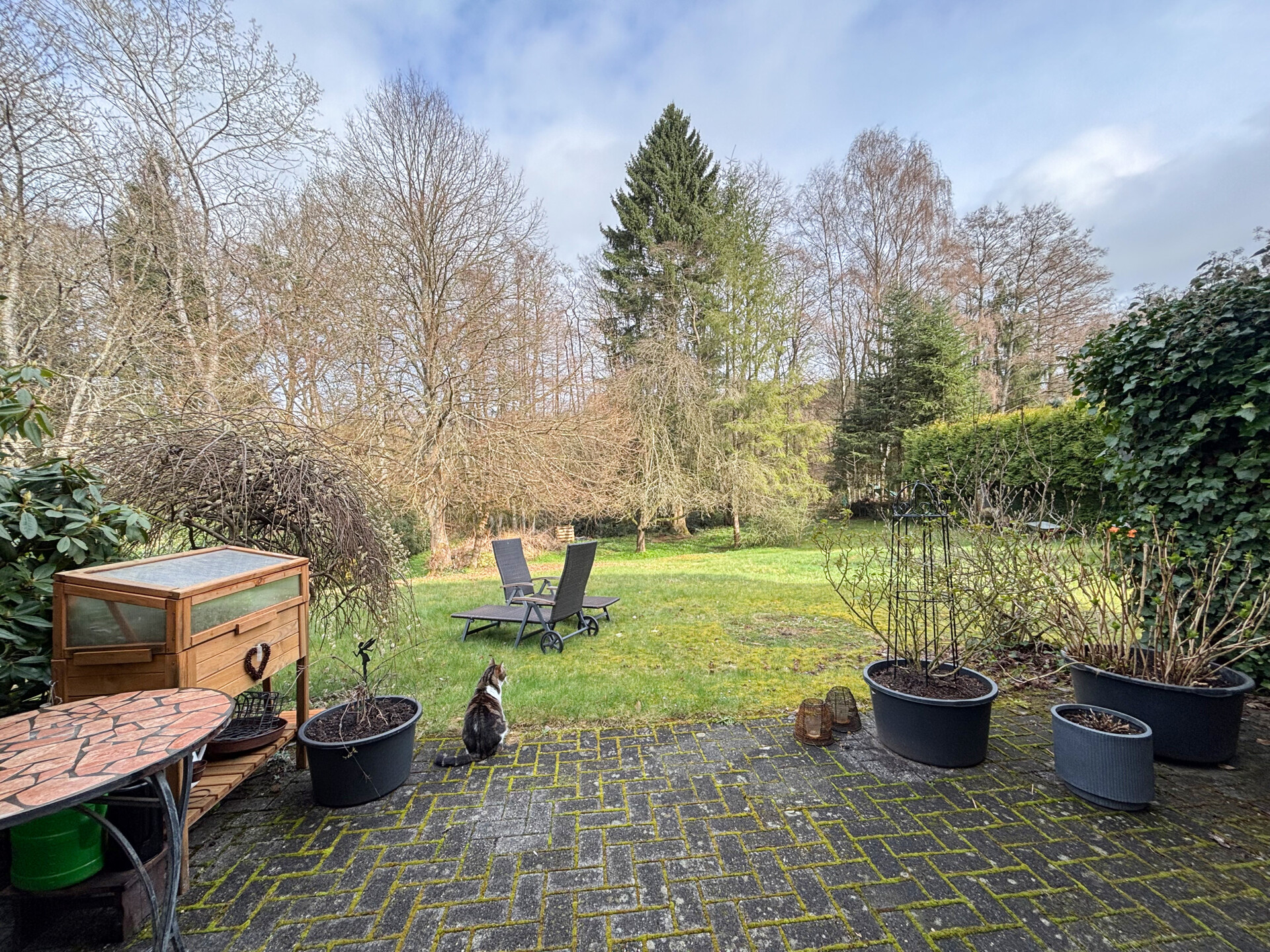 Diese gepflegte 4 Zimmer-Maisonette-Eigentumswohnung (Nr. 1) befindet sich im Untergeschoss eines im Jahr 1994 errichteten Mehrfamilienhauses mit insgesamt sechs Wohneinheiten. Durch die Hanglage bietet die Wohnung einen direkten Zugang vom Wohnzimmer auf die Terrasse und in den Gartenbereich. Die Wohnfläche von ca. 110 m² erstreckt sich über zwei Ebenen und sorgt für eine angenehme Aufteilung der Räume. Auf der unteren Etage befinden sich eine Küche mit Einbauküche, ein Gäste-WC, ein großzügiger Abstell-/HWR sowie ein helles, geräumiges Wohnzimmer mit Zugang zur Terrasse. Von hier aus gelangt man in den gemeinschaftlichen Gartenbereich, der im hinteren Teil an einen kleinen Bachlauf und eine bewaldete Fläche grenzt und somit eine besonders naturnahe Atmosphäre bietet. Über eine Treppe erreicht man die obere Ebene. Hier stehen zwei Schlafzimmer, ein Büro sowie ein modernisiertes Bad zur Verfügung. Ein eigener Stellplatz im oberen Grundstücksbereich gehört ebenfalls zur Wohnung. Die Einheit ist aktuell vermietet und erzielt eine monatliche Kaltmiete von 950 €. Es besteht ein Vertrag mit einer Hausverwaltung, die sich um die Abrechnungen der WEG kümmert. Zwei Räume werden zeitnah noch renoviert (Tapezieren + Streichen).Ausstattung